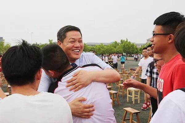周少华校长与孩子们热情拥抱